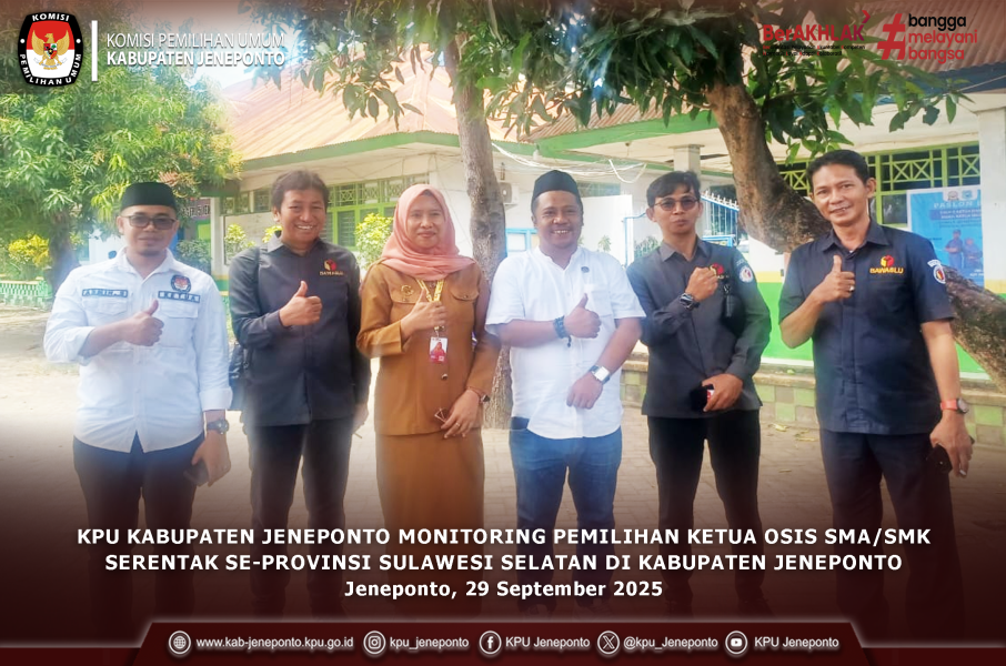 #TemanPemilih-Komisi Pemilihan Umum (KPU) Kabupaten Jeneponto melaksanakan kegiatan monitoring pelaksanaan Pemilihan Ketua OSIS (Pilketos) SMA/SMK secara serentak di Kabupaten Jeneponto. Senin (29/09/2025).