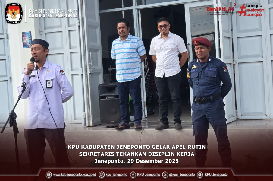 Melalui apel rutin ini, diharapkan seluruh jajaran KPU Kabupaten Jeneponto dapat terus meningkatkan profesionalisme, integritas, dan kinerja dalam mendukung pelaksanaan tugas dan fungsi KPU secara berkelanjutan.