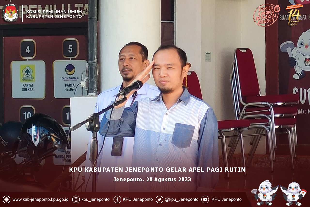 #TemanPemilih--KPU Kabupaten Jeneponto menggelar Apel Pagi Rutin, Senin (28/8/2023) bertempat di Halaman Kantor KPU Kabupaten Jeneponto.