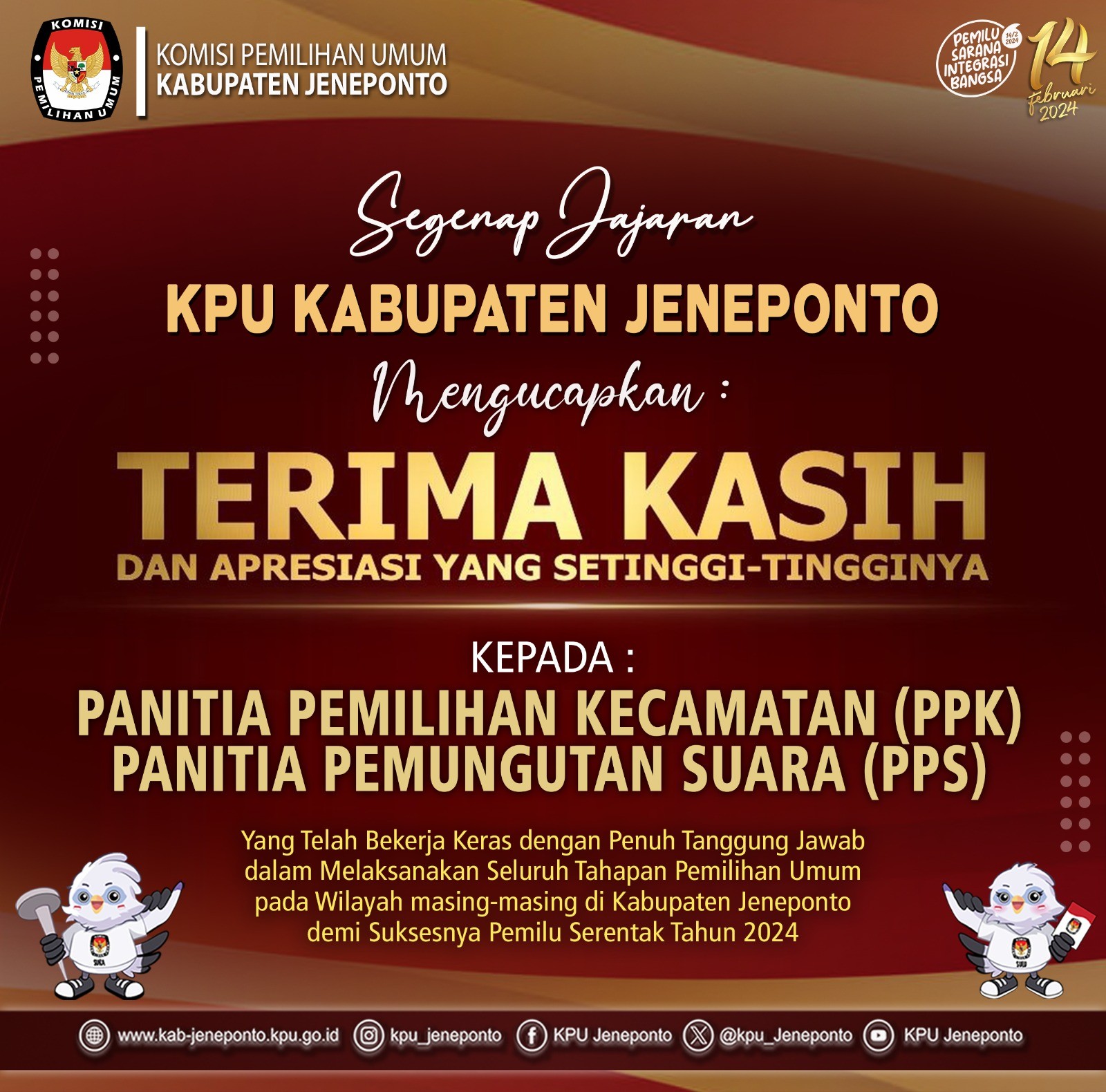Kegiatan apel diakhir dengan pelepasan cuti bersama serta pemberian cinderamata kepada satu orang Pegawai Negeri Sipil (PNS) Purna Bakti di lingkungan sekretariat KPU Kabupaten Jeneponto, yang diberikan langsung oleh Ketua KPU Kabupaten Jeneponto, Asming S didampingi para Komisioner dan Sekretaris.