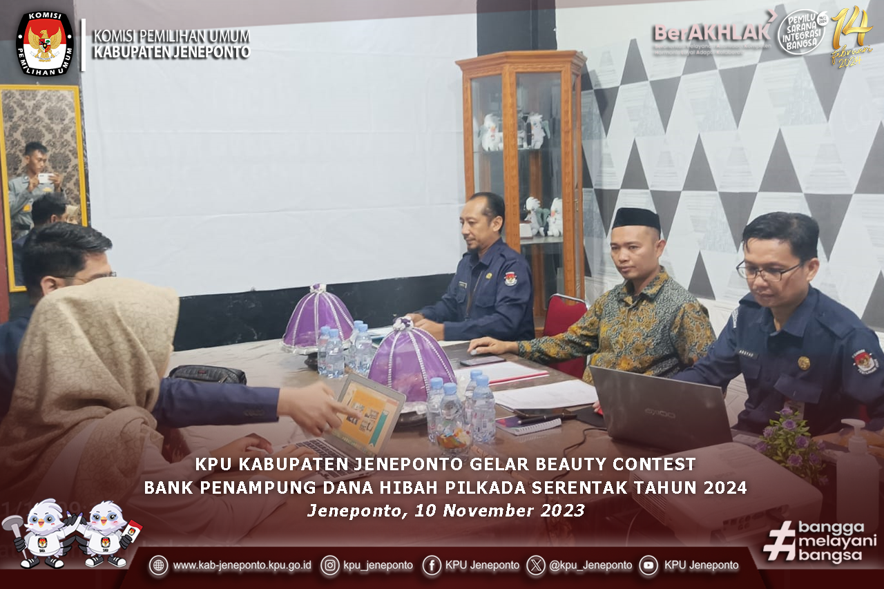 #TemanPemilih–Komisi Pemilihan Umum Kabupaten Jeneponto melaksanakan beauty contest untuk penampung dana hibah Pilkada Serentak Tahun 2024 dengan pihak perbankkan yang ada di Kabupaten Jeneponto. Jumat (10/11/2023) Ada empat bank yang mengikuti kegiatan tersebut diantaranya Bank Tabungan Negara (BTN), Bank Rakyat Indonesia (BRI), Bank Syariah Indonesia (BSI), dan Bank Sulselbar Cab. Jeneponto. Empat bank tersebut telah dilaksanakan presentasi dari pihak bank kepada Tim Seleksi Beauty Contest KPU Kabupaten Jeneponto. Ketua KPU Kabupaten Jeneponto, Sapriadi. S, sangat berharap dengan adanya beauty contest ini ada pihak bank yang mau menampung dana hibah pilkada dan bekerjasama yang baik dengan KPU Kabupaten Jeneponto. “Semoga ada perbankkan yang bisa bekerja sama dengan baik dan mudah dalam proses keuangan terutama penggajian pada pihak penyelenggara,” Ujar Sapriadi. Sekretaris KPU Kabupaten Jeneponto Anzar Hasanuddin menjelasakan, ada beberapa kriteria bank yang akan dipilih, misalkan, bank dapat memberikan jaminan terhadap keamanan dan kelancaran dalam penyimpanan, pendistribusian, dan penyaluran dana hibah Pemilihan, paling rendah sampai dengan tingkat Kecamatan. “Keamanan dan kelancaran penyaluran ini penting, karena sangat dibutuhkan dalam melaksanakan Pilkada Serentak Tahun 2024 yang baik,” Jelas Anzar. Sedangkan Kasubbag Keuangan, umum dan Logistik KPU Kabupaten Jeneponto Arsyad menjelasakan, pihak bank juga harus bisa menyediakan fasilitas prima kepada KPU Kabupaten Jeneponto. "Contohnya Layanan penarikan uang tunai tanpa antri, bebas biaya administrasi rekening, bebas biaya cek, layanan itu sangat kita butuhkan demi suksesnya penyelenggaraan Pilkada Serentak Tahun 2024,” tutur Arsyad. Rangkaian pelaksanaan presentasi beauty contest ini terselenggara selama satu hari dari empat perbankan. Setelah pelaksanaan presentasi maka dilanjutkan penilaian dari pimpinan KPU Kabupaten Jeneponto yang kemudian akan memilih bank yang siap bekerjasama dengan baik dan bisa mendukung pelaksanaan Pilkada Serentak Tahun 2024 dengan sukses dan terbuka. #KPUMelayani #PemiluSerentak2024 #banggamelayanibangsa