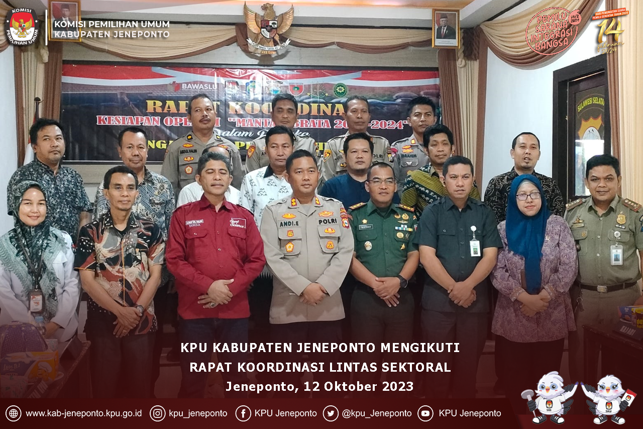 Rakor Lintas Sektoral yang digelar oleh Kepolisian Resort Jeneponto dalam rangka persiapan pengamanan Pemilu Serentak Tahun 2024 di wilayah Kabupaten Jeneponto. Hadir pada rapat tersebut, Setda Jeneponto, Dandim 1425 Jeneponto, Kejaksaan, Bawaslu, Pengadilan Negeri, Pengadilan Agama, Asisten 1, Kesbangpol, Satpol PP, serta jajaran pimpinan polres dan kapolsek dalam wilayah kab. Jeneponto.