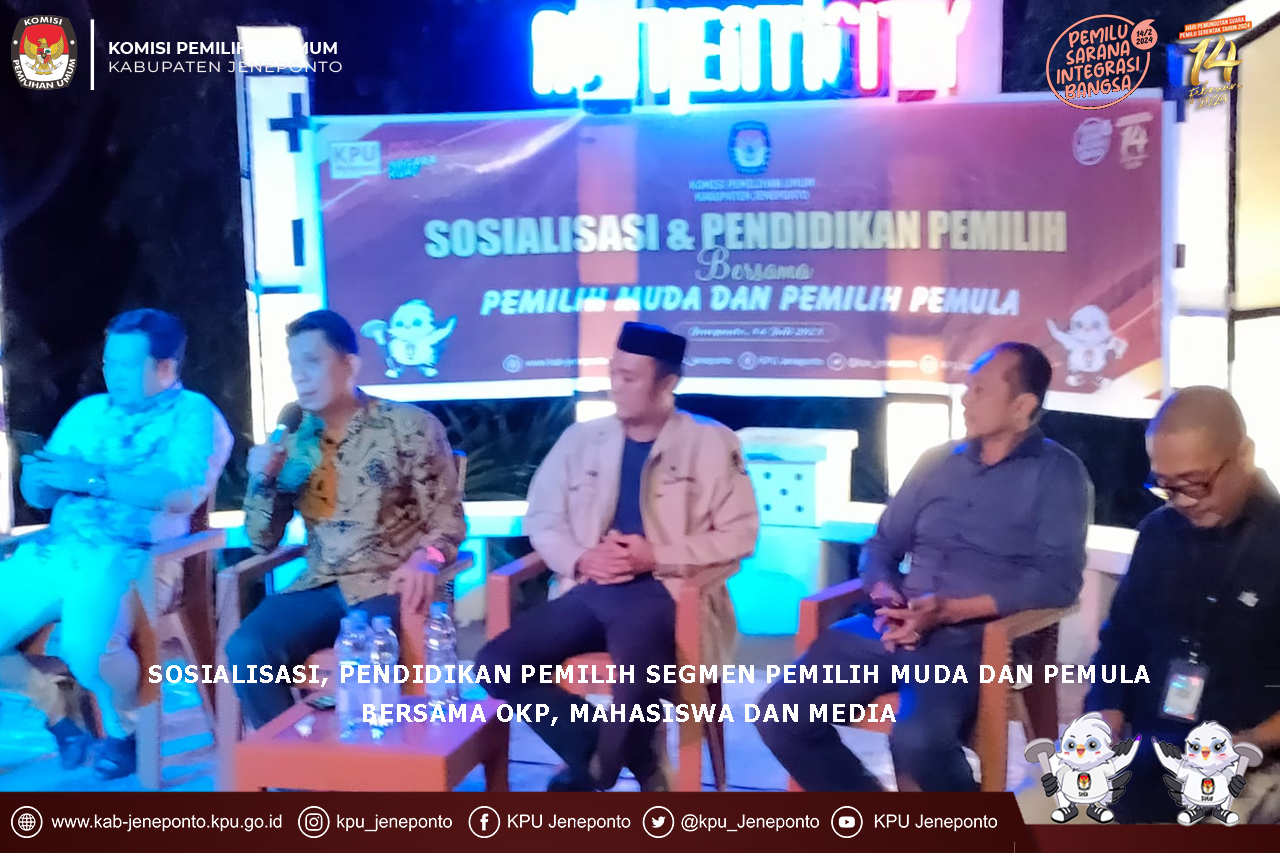 #TemanPemilih, KPU Kabupaten Jeneponto gelar pendidikan pemilih segmen Pemilih Muda dan Pemula bersama Organisasi Kepemudaan, Mahasiswa dan Media yang bertempat di Cafe Oase Kabupaten Jeneponto . Jumat (14/7/2023)