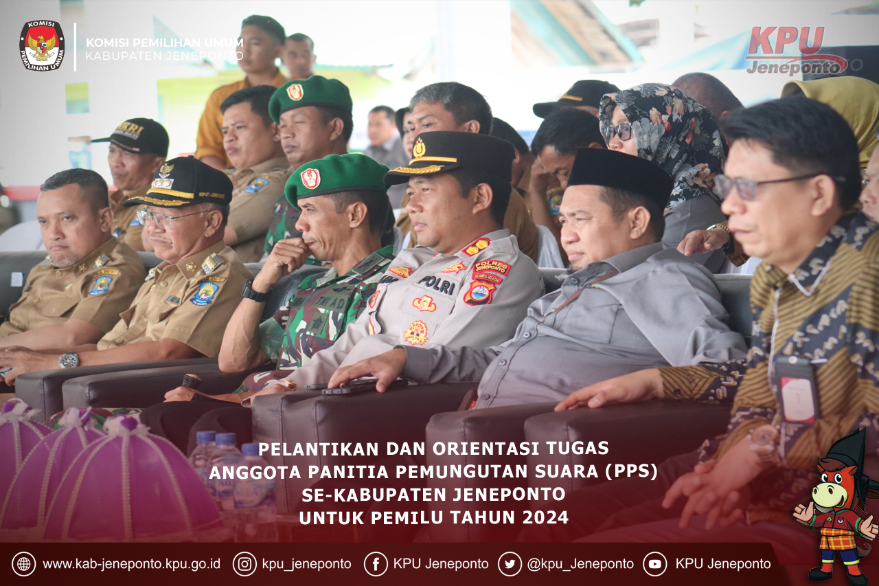 Hadir Ketua KPU Jeneponto, Muh. Alwi, Komisioner KPU Jeneponto, Sapriadi Saleh, dan Saparuddin, Pimpinan Bawaslu, Sampara Halik, Wakapolres Jeneponto, Kompol Muh. Idris, mewakili Dandim, Kapten Inf Abdul Azis, ketua dan pengurus parpol, tokoh pemuda, dan pers.
