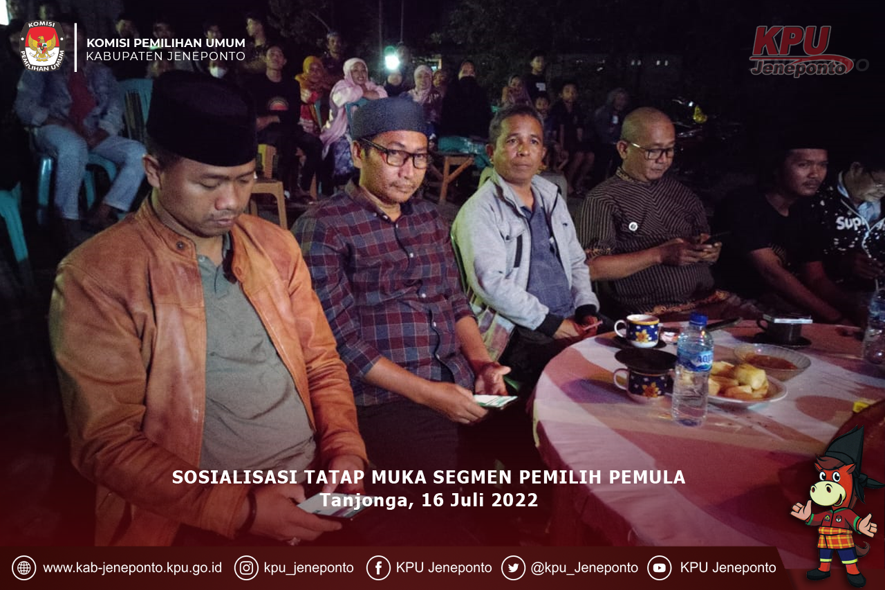 Kegiatan ini dihadiri oleh Ketua dan Anggota KPU Kabupaten Jeneponto, Camat Turatea, Kasubag, Staf Sekretariat KPU Kabupaten Jeneponto serta Perwakilan Pemerintah Desa, Tokoh Masyarakat, Agama, Pemuda, Perempuan dan Ratusan Masyarakat setempat Desa Tanjonga Kec. Turatea.