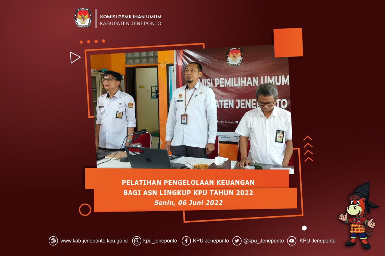 1. Pelatihan Tata Kelola Keuangan hari kedua yang dilaksanakan oleh KPU RI diikuti oleh Sekretaris KPU Kabupaten, Anzar Hasanuddin selaku KPA didampingi Kasubag KUL, PPK, Bendara, staf pengelola keuangan serta operator BMN;