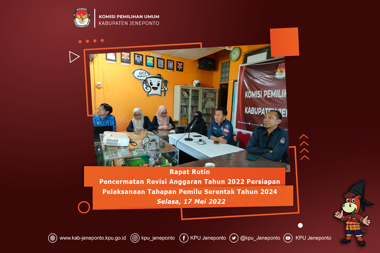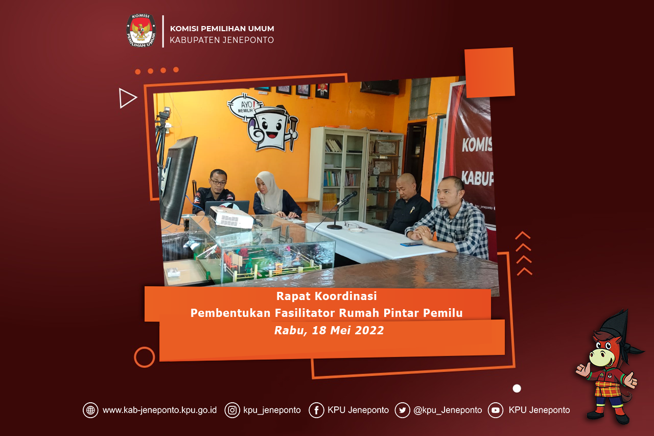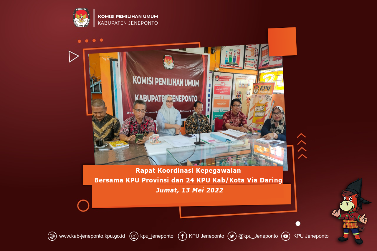 #TemanPemilih, Hari ini, Jumat (13/5/2022) Ketua dan Anggota Komisioner KPU Kabupaten Jeneponto, Sekretaris, Kasubag, serta Staf Pelaksana Sekretariat KPU Kabupaten Jeneponto menghadiri rapat koordinasi Kepegawaian bersama KPU Provinsi Sulawesi Selatan secara daring di Rumah Pintar Pemilu Balla Panrannuangta KPU Kabupaten Jeneponto.