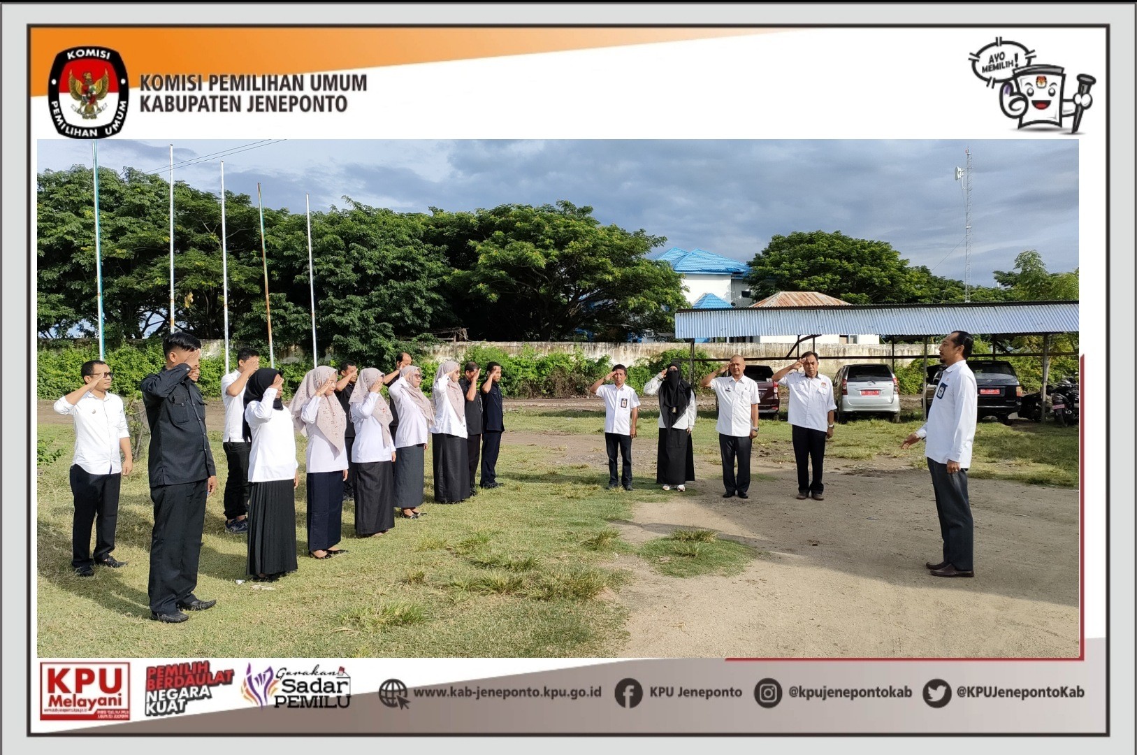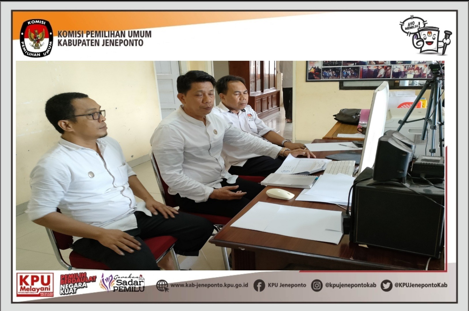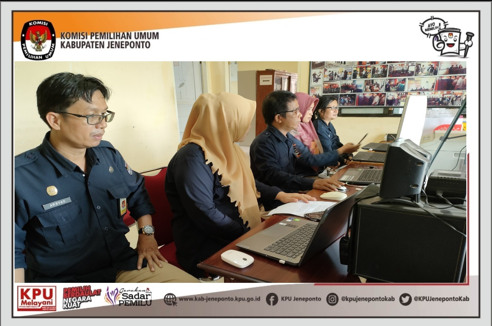 Pengamanan secara daring yang dilaksanakan oleh KPU Provinsi Sulawesi Selatan di rumah Pintar Pemilu Balla Panrannuangta KPU Kabupaten Jeneponto. Kamis, 10/2/2022. Rapat Konsolidasi ini di hadiri oleh Sekretaris, Anzar Hasanuddin, S.Kom., M.A.P dan didampingi Kasubag Keuangan, Umum dan Logistik (KUL) Ahmad Basri, S.E serta PPNPN Jagat Saksana KPU Kabupaten Jeneponto. Dalam Rapat Konsolidasi Sistem Pengamanan KPU Provinsi dan KPU Kabupaten/Kota Se-Sulawesi Selatan. Kepala Bagian Pengaman Dalam Sekretariat Jenderal KPU, Ashari Andi Muhammad Dahlan Menjelaskan tentang Tugas Pokok dan Fungsi Jagat Saksana dalam memberikan keamanan dan kenyamanan di lingkungan KPU Provinsi dan KPU Kabupaten/Kota.sesuai dengan PKPU No, 14 Tahun 2020. “Tugas saudara ini tidak mudah, memang terkesan sederhana hanya jaga kantor tetapi memberi keamanan ini tanggung jawab besar dan mulia karena garda terdepan keamanan, rasa aman, dan rasa nyaman di kantor KPU berada di tangan saudara-saudara,” tegas Ashari. #KPUMelayani #PemilihanSerentak2024