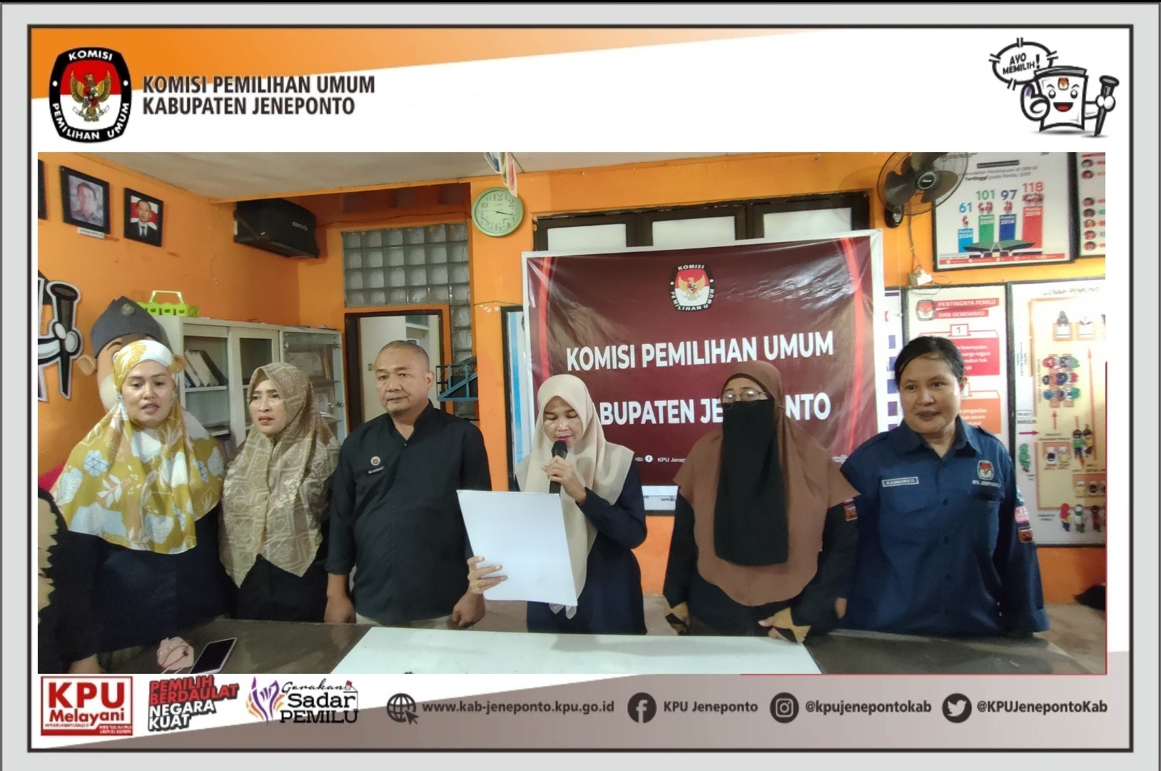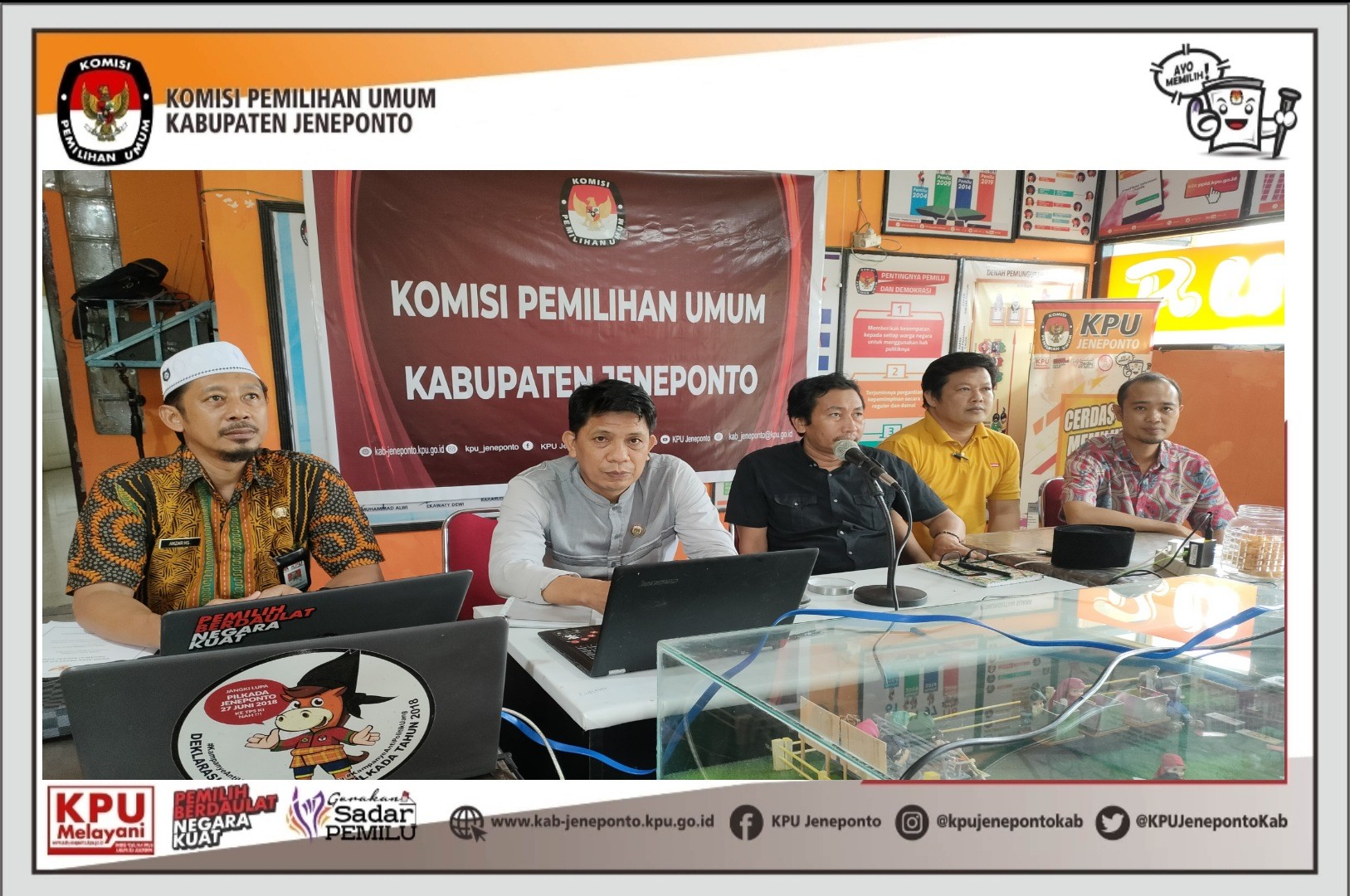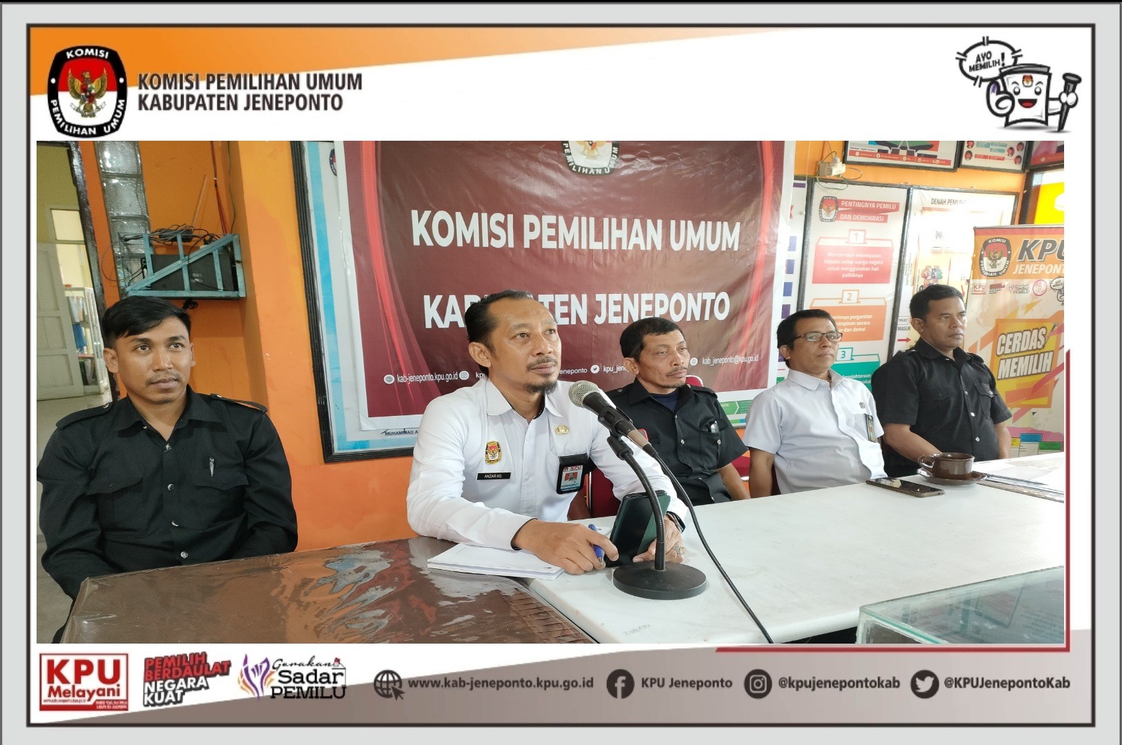 Pengamanan secara daring yang dilaksanakan oleh KPU Provinsi Sulawesi Selatan di rumah Pintar Pemilu Balla Panrannuangta KPU Kabupaten Jeneponto. Kamis, 10/2/2022. Rapat Konsolidasi ini di hadiri oleh Sekretaris, Anzar Hasanuddin, S.Kom., M.A.P dan didampingi Kasubag Keuangan, Umum dan Logistik (KUL) Ahmad Basri, S.E serta PPNPN Jagat Saksana KPU Kabupaten Jeneponto. Dalam Rapat Konsolidasi Sistem Pengamanan KPU Provinsi dan KPU Kabupaten/Kota Se-Sulawesi Selatan. Kepala Bagian Pengaman Dalam Sekretariat Jenderal KPU, Ashari Andi Muhammad Dahlan Menjelaskan tentang Tugas Pokok dan Fungsi Jagat Saksana dalam memberikan keamanan dan kenyamanan di lingkungan KPU Provinsi dan KPU Kabupaten/Kota.sesuai dengan PKPU No, 14 Tahun 2020. “Tugas saudara ini tidak mudah, memang terkesan sederhana hanya jaga kantor tetapi memberi keamanan ini tanggung jawab besar dan mulia karena garda terdepan keamanan, rasa aman, dan rasa nyaman di kantor KPU berada di tangan saudara-saudara,” tegas Ashari. #KPUMelayani #PemilihanSerentak2024