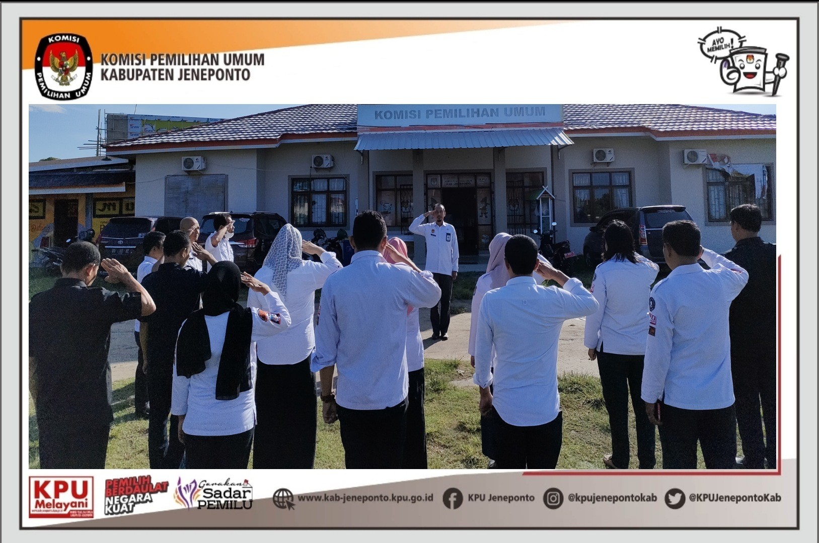 #TemanPemilih, Senin (24/1/2022) KPU Kabupaten Jeneponto menggelar Apel Pagi yang diikuti oleh jajaran sekretariat. Bertindak sebagai Pembina Apel, Sekretaris KPU Kabupaten Jeneponto, Anzar Hasanuddin.
