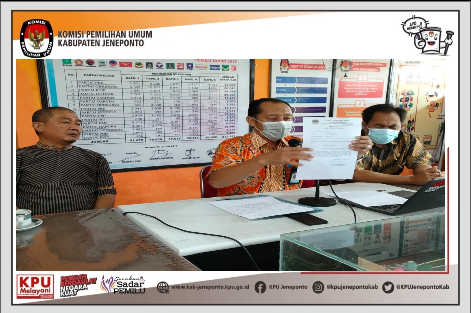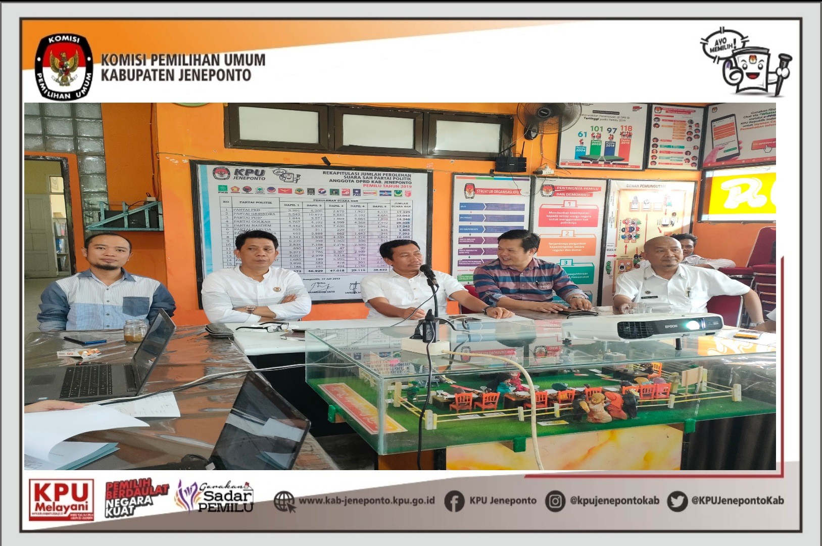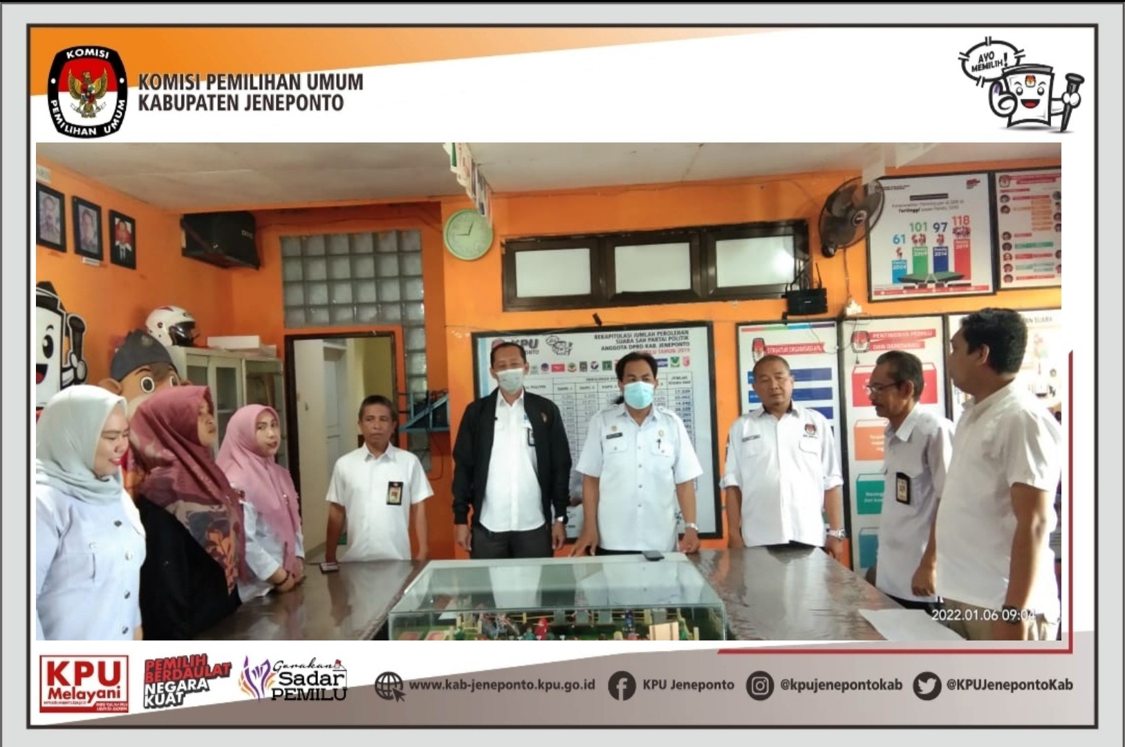 #TemanPemilih-Dalam rangka untuk membuktikan dan mempertanggungjawabkan penggunaan anggaran, KPU Kabupaten Jeneponto melaksanakan kegiatan Rapat Rutin dengan agenda Monitoring dan Evaluasi terhadap pelaksanaan kegiatan Tahun 2021 yang dilaksanakan diruang RPP Balla Panrannuangta. Senin, 10/1/2022. Rapat rutin ini dibuka langsung oleh Ketua KPU Kabupaten Jeneponto Muhammad Alwi, dan diikuti oleh anggota Komisioner KPU Kabupaten Jeneponto, Kasubag, Pejabat Fungsional, Staf, PPNPN dan tenaga sukarela sekretariat KPU Kabupaten Jeneponto. Dalam sambutannya, Muhammad Alwi Kegiatan Monitoring dan Evaluasi atau yang sering dikenal dengan istilah monev mencakup mulai dari proses pengumpulan data realisasi program/kegiatan, pelaporan kegiatan, hingga penilaian dan evaluasi capaian kinerja. "Monev bertujuan untuk membuktikan dan mempertanggungjawabkan atas penggunaan anggaran yang dikelola (prinsip akuntabilitas) dan untuk menginventarisir faktor – faktor pendukung dan penghambat sebagai bahan evaluasi agar program/kegiatan selanjutnya dapat lebih berdayaguna dan berhasil-guna (prinsip efektivitas dan efisiensi)". Ungkap Muhammad Alwi. Hasil dari monev ini selanjutnya menjadi bahan pertimbangan dalam kegiatan secara menyeluruh. Diharapkan dengan adanya monev maka akan dapat dihasilkan perencanaan program/kegiatan yang lebih baik lagi di tahun-tahun selanjutnya. #KPUMelayani