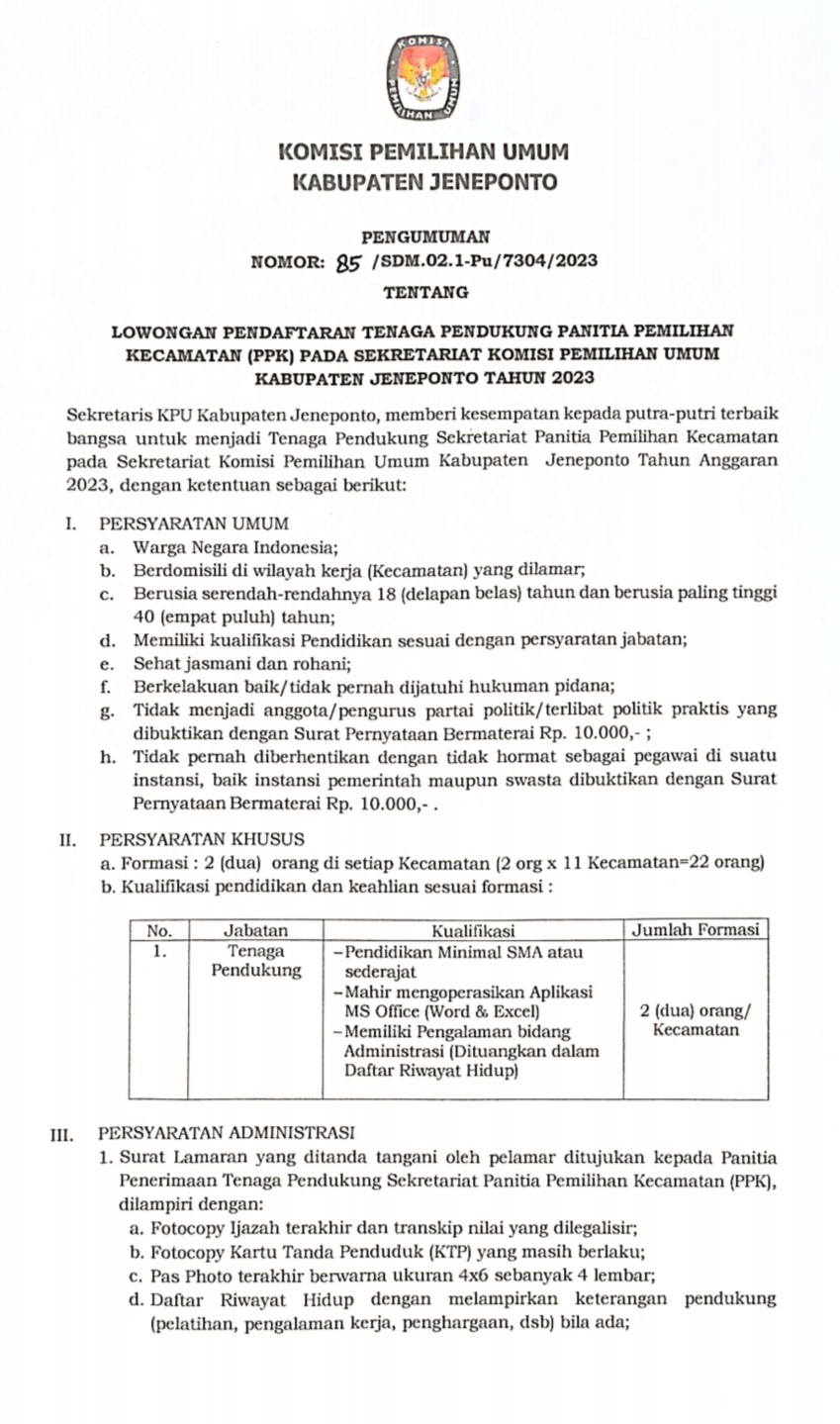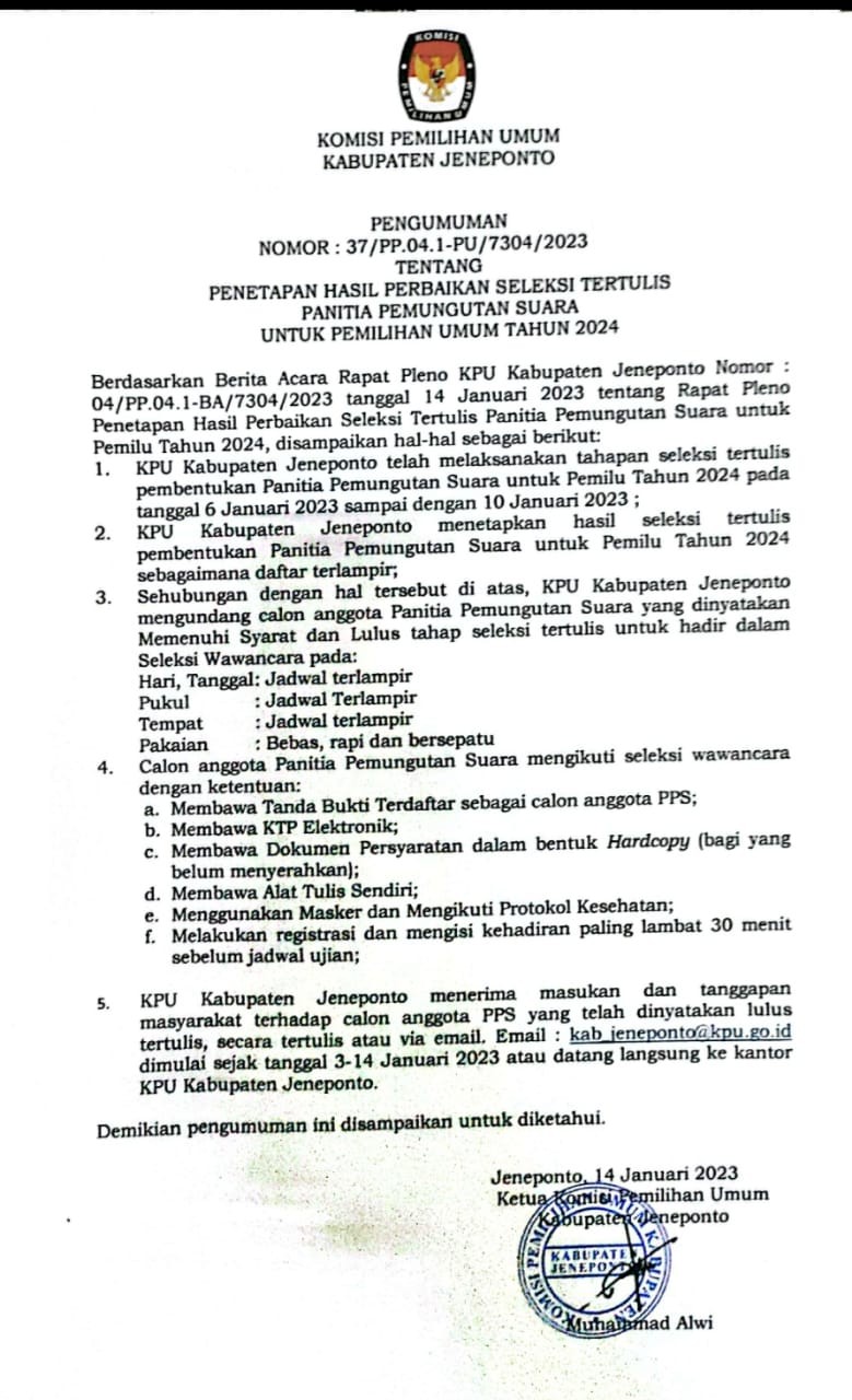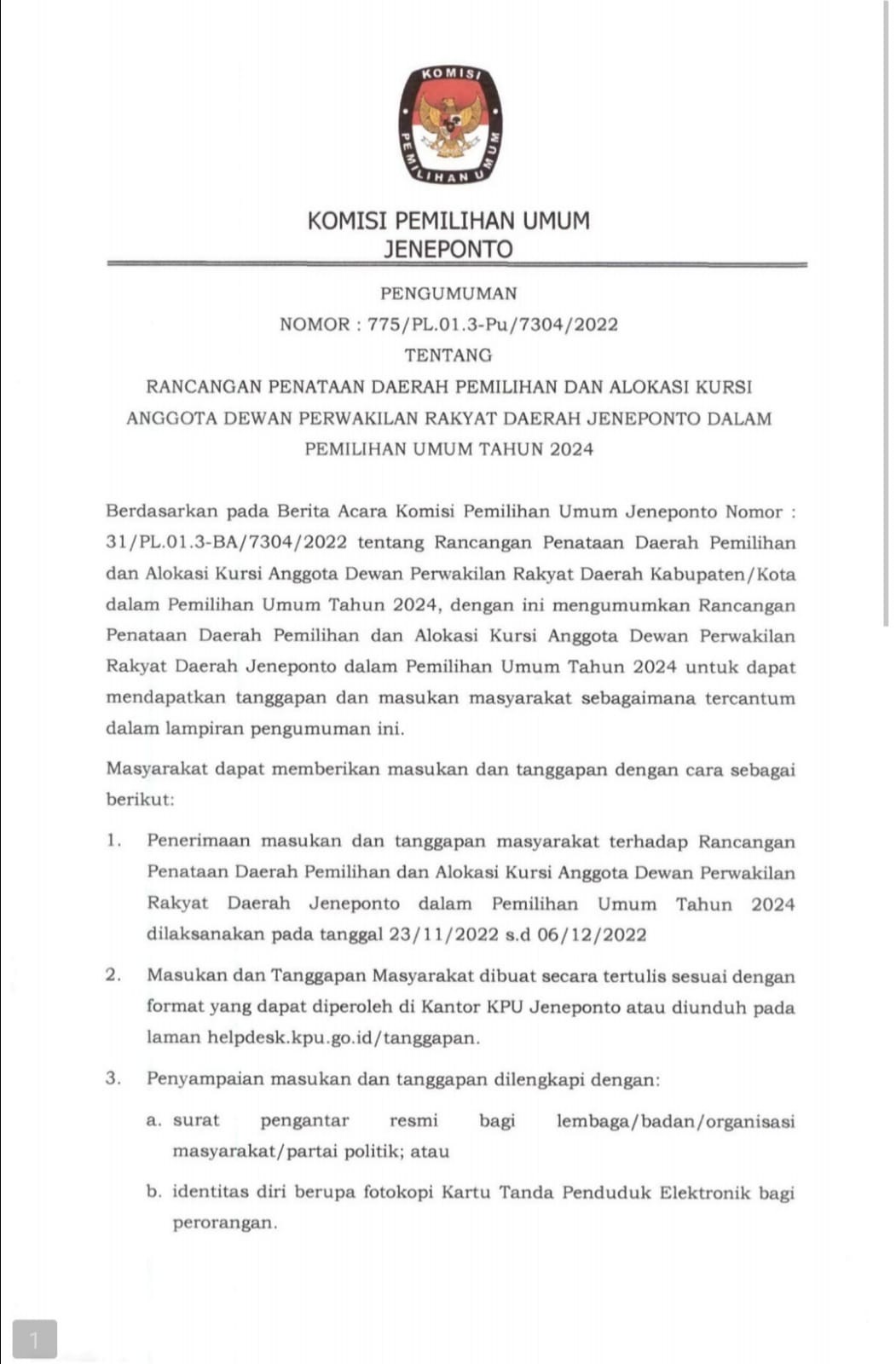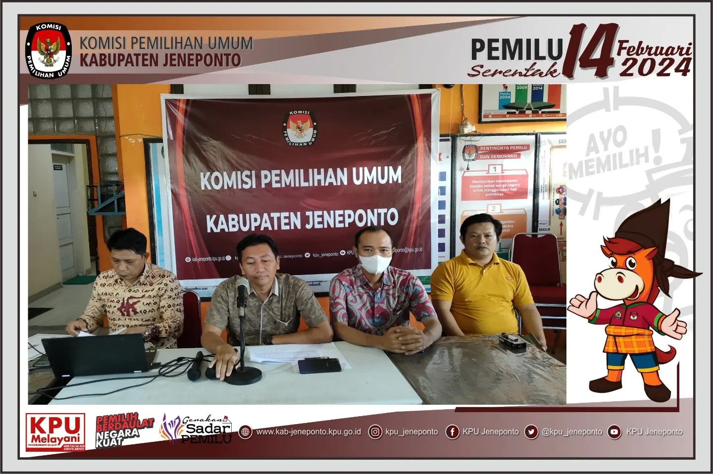 Dalam rapat pleno tersebut Komisi Pemilihan Umum Kabupaten Jeneponto menetapkan Rekapitulasi Daftar Pemilih Berkelanjutan periode bulan Februari Tahun 2022 dengan jumlah pemilih sebanyak 272.608 (Dua Ratus Tujuh Puluh Dua Ribu Enama Ratus Delapan) dengan rincian pemilih laki-laki berjumlah 131.501 (Seratus Tiga Puluh Satu Ribu Lima Ratus Satu) pemilih dan pemilih perempuan berjumlah 141.107 (Seratus Empat Puluh Satu Ribu Seratus Tujuh) pemilih, tersebar di 11 (Sebelas) Kecamatan dengan rincian sebagai berikut :